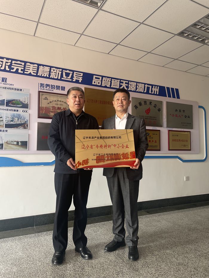 4月29日,元寶區(qū)區(qū)委書記左忠鵬帶隊走訪遼寧天澤產(chǎn)業(yè)集團紡織有限公司。并親自頒發(fā)遼寧省“專精特新”中小企業(yè)牌匾。