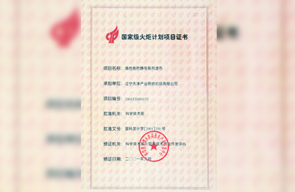 國家級火炬計劃項目證書