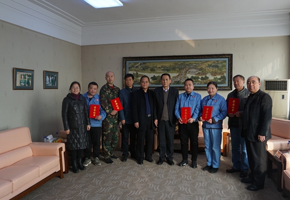 12月10日,市總工會(huì)副主席姜明遠(yuǎn)、勞動(dòng)和經(jīng)濟(jì)工作部部長王洪濤和元寶區(qū)總工會(huì)主席崔建國、副主席叢蓮敏等領(lǐng)導(dǎo)來到遼寧天澤產(chǎn)業(yè)集團(tuán)有限公司,為榮獲丹東市職工技能大賽“車工技術(shù)狀元”的關(guān)慶操和榮獲丹東市職工“五小”優(yōu)秀創(chuàng)新成果獎(jiǎng)項(xiàng)的代表頒獎(jiǎng)。