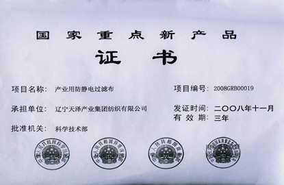 國(guó)家重點(diǎn)新產(chǎn)品證書