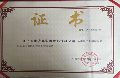 中國(guó)產(chǎn)業(yè)用紡織品行業(yè)協(xié)會(huì)理事單位證書